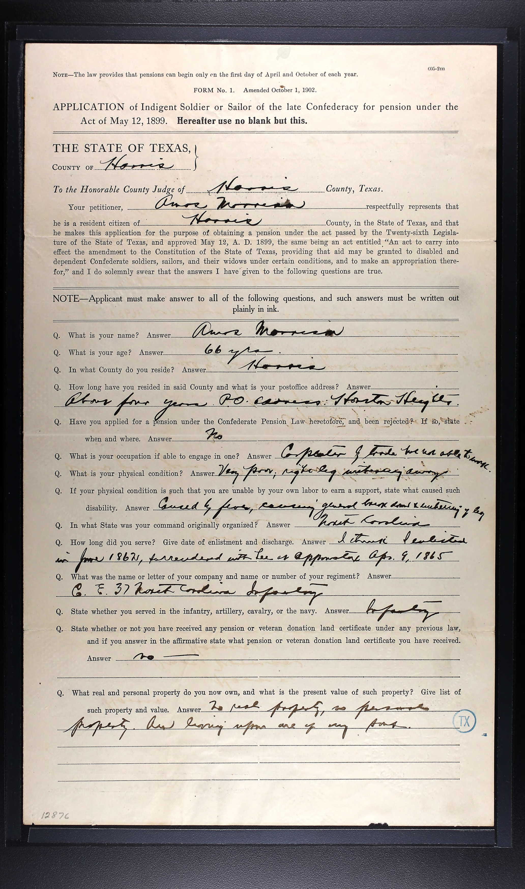 WAM-Civil War Pension papers for Amos Morrison Pg 2